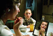 Ecco allora che quando compare uno specchio (la madre che si trucca, Spider riflesso nell'anta dell'armadio della custode dell'ospizio), vi ritroviamo sempre riflesso il lato oscuro di ogni viso, quell'ambivalenza schizofrenica tipica della Grande Madre, datrice e fagocitatrice di tutto.