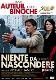 Cercare risposte chiare e concise ai quesiti sullo schermo non è una colpa, ma non riconoscere la portata di alcune tematiche universali nascoste dietro a fatti specifici è un errore di valutazione che conduce a perdersi in un vicolo cieco. É ciò che accade nel film al protagonista Georges (Daniel Auteuil), che ha impostato la propria vita nella ricerca di un ricongiungimento della dicotomia tra ciò che realmente accade e ciò che lui desidera. Il problema non è nel processo creativo che consiste nel cercare di plasmare la realtà, attribuendole una forma mostrabile, ma nel passo falso di cominciare a credere solo alla versione artefatta degli eventi. L'errore imperdonabile è ricongiungere la Storia con la propria, personale e privata, versione dei fatti. Più volte in Niente da nascondere il protagonista assume questo atteggiamento, tiene segreti, mente alla moglie (Juliette Binoche). Georges conduce un talk show popolare in cui si parla di libri, attuando quindi, per forza, un'operazione di conversione del linguaggio letterario in lingua parlata, una codifica dell'aulico in chiacchiera televisiva. E se non bastasse il fatto che lavora in tv si dica che la stessa scenografia dello studio dove si registra il programma è modellata sull'archetipo della sua casa (e quindi del sua intimità domestica, di ciò che vuol mostrare di essa): nelle scene girate nei due diversi ambienti l'immagine ricorrente alle spalle del protagonista è costituita da una libreria (quella nell'abitazione è colma di volumi, la sua versione tv è satura di libri finti, tristi simulacri di cultura relegata in una realtà condizionata, conoscenza al contempo sminuita e artefatta nell'atto nobile del divulgarla).