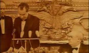 Poi, iniziando dall’epifania politica di Fanfani posta a metà film, gli esponenti dello scudocrociato invadono in maniera più evidente lo schermo, e proprio la biografia agiografica e televisiva del Presidente del Consiglio pare fornire una nuova e maggiore legittimazione in senso spettacolare e sociale (quindi nazional-popolare) alla figura del politico. Un riflesso della nuova consapevolezza maturata dagli onorevoli si ha poco dopo, nella scena che il montaggio rende forse il momento più agghiacciante del film: quella della conferenza stampa di Rumor dopo la tragedia del Vajont. La disinvoltura e la spudoratezza del segretario democristiano relegano d’un tratto la secchezza retorica e gestuale di De Gasperi, messa in campo in precedenza, all’archeologia della comunicazione politica. È il segno che è in atto un cambiamento, una riduzione della distanza tra i cittadini e i loro rappresentanti, apparentemente confermata dal climax costituito nel finale dalla contestazione che va in scena durante il congresso. Scrivo “apparentemente” perché si tratta di un cambiamento che investe più l’immagine che la sostanza, ed è esemplare in questo senso appunto la scelta delle immagini che contraddistingue tutta la pellicola: i notabili Dc non sono quasi mai inquadrati in mezzo alla gente, e anzi il frequente ricorso ai primi piani aiuta ad isolarli dal contesto e a favorire la citata lettura antropologica. La selezione del materiale e il montaggio concorrono dunque a creare l’idea di una frattura sociale, evidente grazie anche alle dinamiche dell'ellisse e del campo/controcampo (si consideri la sequenza della visita di Andreotti a Cinecittà, in cui il politico non viene mai colto insieme alle star hollywoodiane). La distanza si estremizza fino a divenire contrapposizione netta e scontro nella scena del ricevimento, “davvero degno di René Clair” (2), organizzato per Nixon al Quirinale. La contestazione, dunque, e con essa ogni traccia di alterità rispetto alle figure del potere, non si vede: nella migliore delle ipotesi ci si deve limitare a sentirla. Sembra fare eccezione, come detto, la chiusura sul congresso, quando pare che proprio un’esigenza cinematografico-drammaturgica porti a mettere in campo anche la controparte. Ma l’illusione che all’ingresso in scena di un diverso soggetto - comunque relegato al ruolo di attore collettivo, magmatico, indistinto - possa corrispondere un’effettiva mutazione nella chimica sociale è di breve durata. I ‘volti nuovi’ che usciranno dal conclave democristiano saranno gli stessi di prima, all’insegna del perpetuarsi di quella che oggi - e in questo il film potrebbe definirsi profetico - abbiamo imparato a definire casta.
