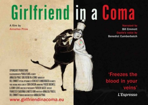 Girlfriend in a coma ti fa sentire bello, buono e giusto perché comprendi la bellezza, la bontà e la giustezza di Luca Signorelli o di Dante. La cui bontà, bellezza e giustezza si ritrovano anche in Marchionne o nel nipote del fondatore di una grande azienda dolciaria, che è estremamente contento del fatto che dieci milioni di famiglie italiane sorridano al mattino mangiando la sua crema spalmabile al cioccolato. E dovremmo gioirne anche noi, alzandoci al mattino, contenti di comprendere la grandezza di questo disegno estetico, che certamente deve essere anche etico, perché niente di così bello e buono può essere sbagliato. Sia lodata allora la crema spalmabile al cioccolato e il disegno intelligente del capitalismo, e degli artisti visuali e dei fotografi e degli imprenditori ecologici che emigrano a Londra, creativi come la finanza che sta nascosta dietro le linee geometriche di palazzi belli, buoni e giusti. Perché ce lo ha insegnato Steve Jobs - i cui computer sono sempre in mano ai belli, ai buoni e ai giusti (che spesso sono anche ricchi ma questo non ha importanza alcuna) -, niente di così asettico e liscio può essere cattivo e ingiusto, ma deve essere bello, buono e giusto; come le persone che hanno un computer con una mela disegnata sopra. E’ il circolo del consumo consapevole (ma non troppo, che se no sei retorico) e virtuoso, della giustezza, della bellezza e della bontà di chi sceglie i prodotti giusti, belli e buoni. Chi indossa delle scarpe con una grossa H sul fianco è sicuramente brutto (anche se è bello fuori è certamente brutto dentro) e cattivo, e probabilmente è pure un maniaco sessuale. Chi invece sceglie dei sandali infradito belli, buoni e giusti la cui marca inizia per B (non altri, mi raccomando, che le regole delle tribù di consumo sono feroci quanto quelle dei branchi di lupi) sarà sicuramente una bella e brava persona, che salverà il nostro paese dai grassi e sudati pulcinella e dai maniaci sessuali (chi è brutto è per forza anche cattivo). Lo salverà facendo il designer o twittando un commento sagace e brillante o leggendo il giornale bello, buono e giusto (che inizia per R).
