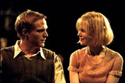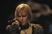Abbiamo allora una Grace illuminata dalla luce di un tramonto che non sta avendo luogo, lambita da una pioggia di polline che fluttua grazie ad un vento che non soffia, o ancora sfiorata da fiocchi di neve che scendono dal nulla. E questo perché nel grande libro di Dogville non appare, tra le parole, la descrizione di un panorama di fine giornata fuori dalla finestra, di una primavera in corso, di un inverno rigido. Nel cinema tutte queste circostanze verrebbero mostrate. Nella letteratura, se non sono veicolate dalle parole, non esistono. E Von Trier si attiene al testo. E come il cane, del quale non v'è traccia alcuna se non nel suo abbaiare, altro non riceviamo che una traccia appena accennata dell'universo Dogville, esattamente come le strutture delle costruzioni, delle quali nella lettura altro non si percepisce che la loro sostanza trasparente, atta solo a contenere le azioni quotidiane dei ben più delineati abitanti della cittadina, i cui spostamenti danno luogo a rumori di porte che si aprono e si chiudono, ma che di fatto non esistono. I dialoghi giocano a tal proposito un ruolo molto importante, in quanto provvedono a coadiuvare l'immagine, conferendo ad essa una giustificazione d'essere.