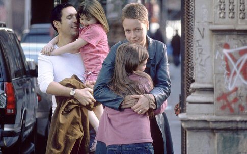 Perché? Perchè parla di lui, di Jim Sheridan, della sua storia, della sua famiglia, del trasferimento in America e della sua esperienza da immigrato, dell’amore per le sue due figlie (nella finzione Christie e Ariel, nella realtà Naomi e Kirsten le quali, di fatto, hanno scritto la sceneggiatura con lui) e il dolore per la perdita del piccolo Frankie, dietro il quale si nasconde il vero Frankie Sheridan, cui il film è dedicato. In In America, infatti, una modesta famiglia irlandese (padre disoccupato, all’occorrenza attore e poi tassista, madre e due bambine piccole) si trasferisce nella Grande Mela in cerca di un futuro migliore dopo la dolorosa perdita del figlioletto Frankie. Non è dunque difficile intravedere in Johnny, il papà senza un soldo che farebbe di tutto per le sue figlie, stroncato e inerme dalla morte del figlio, lo stesso Jim Sheridan. Così com’è altrettanto semplice riconoscere nelle due bambine, Ariel e Christie, interpretate in maniera folgorante da Sarah ed Emma Bolger, realmente sorelle, le vere figlie del regista, Naomi e Kirsten. Stessa discorso per la moglie, che nella finzione ha le sembianze di Samantha Morton. Ma oltre alla trasposizione cinematografica del fatto biografico, ciò che interessa a Jim Sheridan è restituire in immagini un profondo senso religioso e della famiglia. Da buon cattolico, infatti, secondo la migliore tradizione irlandese, Sheridan crede nella divina provvidenza. Come scrive benissimo Lietta Tornabuoni nella sua recensione, qui la divina provvidenza è rappresentata dall’inquilino nero del piano di sotto: “un artista africano malato di AIDS che a volte emette urla angosciose” (interpretato da Djimon Hounsou, candidato per questa interpretazione agli Oscar come miglior attore non protagonista) ma dotato di poteri soprannaturali capaci di far trovare lavoro come attore al capofamiglia, di ridare vita a una neonata in bilico fra la vita e la morte, e di saldare un tremendo conto ospedaliero di trentamila dollari.