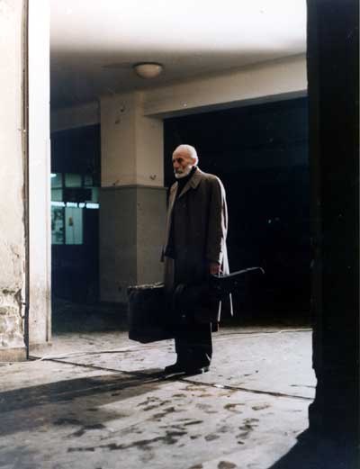 Questo procedimento non sarebbe stato possibile nella fase “politica” di Angelopoulos, essendo “il gruppo” il vero protagonista. In questo caso invece, la macchina da presa si può “riagganciare” al protagonista (o, per meglio dire, ai due protagonisti), circoscrivendo la scena come “isolata” dal resto della narrazione. Anche nel successivo Il passo sospeso della cicogna (To Meteoro vima Tou Pelargou, 1991), forse il film meno “estetizzato” di Angelopoulos, sono presenti almeno un paio di sequenze che riutilizzano le modalità appena descritte. In particolare, la sequenza del matrimonio, che utilizza campi lunghi o lunghissimi (figurativamente prossimi allo Jancsó de L’armata a cavallo [Csillagosok Katonák, 1967]), che si caratterizza in quanto momento “lirico” e “musicale” del film, si trova “giustificata” attraverso l’ultima inquadratura che la denuncia in quanto “vista” dal protagonista. Ancora una volta questi momenti “aleatori” non servono necessariamente per far procedere il racconto, ma vengono “incorniciati” come situazioni “osservate”, esterne al “percorso” dei protagonisti. Un’altra sequenza, quella del matrimonio in L’eternità e un giorno (Mia Eoniotita ke mia mera, 1998) adotta espedienti abbastanza simili: la macchina da presa si “stacca” dal protagonista (Alexandros, interpretato da Bruno Ganz) per seguire una marcia nuziale, contrappuntata dal suono delle fisarmoniche che commentano i balletti dello sposo e della sposa. Da un piano totale si passa al campo lunghissimo, in cui i personaggi si dispongono, ormai usualmente, in maniere distinte e compatte, finché il piano-sequenza viene interrotto dall’intromissione di Alexandros, che “rompe” l’atmosfera “lirica” della sequenza.