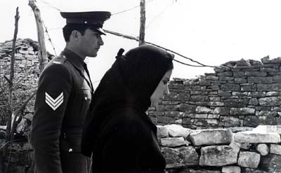 E’ importante però considerare anche un’altra forte componente stilistica, presente nel cinema del cineasta greco, e che troppo poco sovente è stata fatta oggetto di interesse nello studio (e per lo studio) della sua poetica: l’influenza del cinema classico hollywoodiano. E’ effettivamente strano parlare di cinema classico nel caso di Theo Angelopoulos, eppure ci sono due modelli, di cui uno assolutamente centrale, necessari per poter discutere del suo “sviluppo” stilistico: il noir e il musical. Se per il noir ci possiamo riferire in particolare al caso di Ricostruzione di un delitto (Anaparastasi, 1970) – primo lungometraggio del regista –, che, come giustamente nota Bordwell, «rielabora le dinamiche narrative di Quarto potere (Citizen Kane, 1941) e I gangster (The Killers, 1946)» (9), il secondo caso, quello del musical, viene “assimilato” da Angelopoulos a tal punto da trasformarlo in una delle sue più rappresentative “marche di stile”. Infatti, l’utilizzo che il regista greco fa dei “gruppi di persone” attraverso la loro disposizione “pittorica” nel quadro; la fissità “ieratica” di certe inquadrature; l’uso della musica extra-diegetica che coinvolge e che, allo stesso tempo distanzia; l’uso “avvolgente” della macchina da presa, dimostrano chiaramente il debito di Angelopoulos nei confronti degli “inserti musicali” di Donen, Kelly, Sandrich e Minnelli. A ben vedere, sia la “scomposizione” narrativa propria del cinema noir che l’uso “marcato” della cinepresa all’interno del musical, sono elementi di “modernità” all’interno del cinema classico: in particolare, l’uso “evidente” della macchina da presa nel musical, che diventa “protagonista”, sovvertendo il canonico rapporto tra filmico e profilmico (le coreografie di Berkley), sono “eccessi di stile” che ben si adattano alle ricerche di Angelopoulos. L’utilizzo della macchina da presa “avvolgente” e la composizione pittorica del quadro sono infatti due costanti presenti sia nei film della sua prima fase “storica” (I giorni del ’36 [Meres Tu ’36, 1972], La recita, I cacciatori [I Kykighi, 1977]), sia in quelli della seconda fase “intimista” (da Viaggio a Citera in poi). E’ importante notare come queste “coreografie visive” abbiano sempre la stessa struttura: i personaggi entrano nel quadro; inizia un canto/una musica; questi iniziano a disporsi armoniosamente all’interno del quadro assecondati da una macchina da presa che si fa “avvolgente”; ma, nel momento di maggiore “coesione”, l’equilibrio viene “rotto” dall’inserimento di una figura esterna. Se questo procedimento, da un lato richiama “ideologicamente” il teatro epico di Brecht, al cui “stacco musicale” veniva data centralità assoluta (pensiamo all’Opera da tre soldi), “formalmente” Angelopoulos trova la propria fonte di ispirazione stilistica nel musical classico