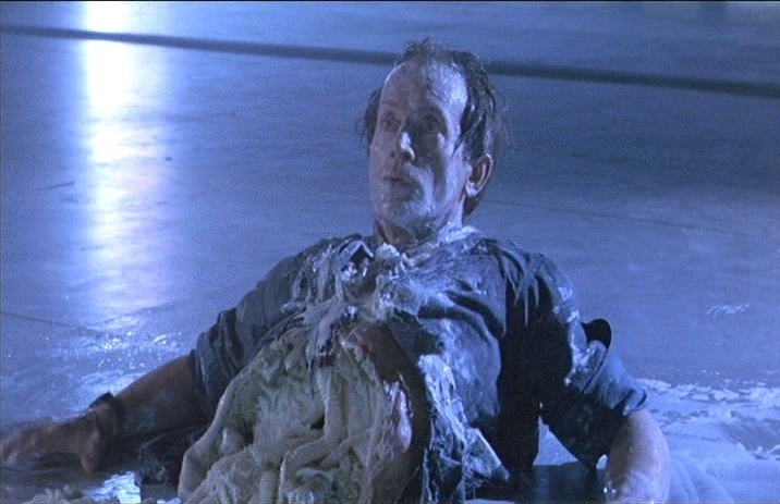 La critica alla tecnologia e ai rischi connessi alla fiducia cieca che l’uomo può riporre in essa è in effetti un tema dominante in tutta o quasi l’opera di Cameron, a partire dal citato Terminator (ed ecco, dopo il sovraccarico di azione, il secondo elemento comune tra i due titoli). Qui la si ritrova non solo nella sconfitta dell’avanzato arsenale a disposizione dei Marines, ma anche nel piano di Burke, l’uomo della Compagnia che trama in segreto nella speranza di utilizzare la biodiversità aliena per sviluppi bellici (2). Tema strettamente connesso a questo, ed anch’esso “amplificato” rispetto all’Alien di Scott, è quello dell’avidità, un tratto che – sembra dirci il film – è comune a tutto il genere umano, senza significative distinzioni di ruoli sociali. Ad un livello “macro”, rappresentato dalla Compagnia, se ne affianca uno “micro”, rappresentato dai singoli (3): i soccorritori di Ripley, che ad inizio film sembrano quasi rammaricati per aver trovato una superstite sulla navicella; i soldati, che si lamentano di non essere pagati abbastanza; i coloni, con i genitori di Newt che si avventurano fatalmente nel relitto alieno per brama di guadagno. L’eccezione, in tutto questo, è naturalmente la protagonista, che rappresenta il vero cuore dell’opera: non solo in senso figurativo, ma anche extratestuale, giacché rappresenta il punto di sintesi tra le due fonti citate in apertura, Alien e Terminator.