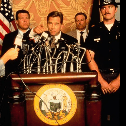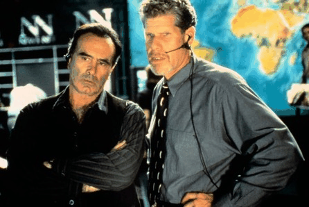 Jim, grazie in primis all’utilizzo della voce off (e poi al bonario carisma di James Earl Jones, ottimo come il resto del cast), si propone chiaramente come coscienza critica della storia. Curiosamente, anch’egli è caratterizzato nel segno della confusione, ma è una confusione di tipo positivo: quella di chi non rinnega il melting pot etnico nel nome di una frammentazione utilitaristica, come si vede nella scena del dialogo con il leader dei “Fratelli musulmani”, ma anzi lo rivendica come elemento di coesione e pacificazione sociale. Reduce delle marce per i diritti civili e sposato ad una donna ebrea, Jim è l’unico che ad un’effettiva conoscenza del passato unisce una chiara tensione verso il futuro (lo dimostra il discorso conclusivo, con l’umanità vista come opera d’arte incompleta). Entrambi elementi, questi, assenti negli altri personaggi. Il passato è oggetto di confusione (ancora una volta), come quando il Presidente scambia Franklin Roosevelt con l’omonimo Theodore, o di distorsione, come nel caso del tecnico di NewsNet convinto che ad Alamo Davy Crockett avesse sconfitto i Messicani. Del futuro meglio non parlare, giacché non ci sarebbe nulla da dire. Se è vero infatti, come detto, che ogni personaggio ha la sua agenda, è vero anche che ognuna di esse è priva di lungimiranza ed autoriferita. Mel si preoccupa di fare ascolto piuttosto che di informare; il Presidente di non sfigurare nel confronto con i predecessori piuttosto che di governare davvero; Farley della sua amante piuttosto che del suo Stato; la responsabile di “Give to the children” del ritorno d’immagine piuttosto che dell’incolumità dei profughi; gli ufficiali delle loro beghe personali piuttosto che dell’esito del confronto … “Ciascuno preferisce pensare ad altro, ascoltare altro, vedere altro rispetto a ciò che realmente conta; così che la combinazione di tanti piccoli errori e difetti di percezione personali conduce a risultati storici catastrofici” (2).