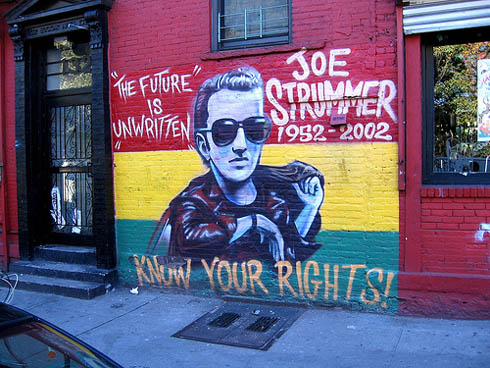 Nel tempo che non basterebbe a dare il one-two-three-four d’attacco, la formidabile sequenza inaugurale di The Future is Unwritten riassume l’intera umana vicenda del cantante: le stazioni radio del mondo trasmettono la notizia della scomparsa (nel dicembre 2002) e subito dopo la voce del diretto interessato, che nel titolo di “punk rock warlord” sceglie inconsapevolmente la sua epigrafe. Ancora la voce (e le immagini) del cantante mentre incide l’inno alla guerriglia bianca White Riot, ‘smentito’ subito dopo dai filmati super8 dove Joe e il fratello giocano alla guerra nei giardini dell’alta borghesia inglese. Da figlio di diplomatico e poi frequentatore di un college privato, il personaggio di Joe Strummer (al secolo John Graham Mellor) bene si presta a riassumere le contraddizioni che talvolta si nascondevano dietro l’integralismo dei punk: una sorta di Bob Dylan post-litteram, veloce a cambiare nome e abito quando i tempi e le situazioni lo richiedono, passato con disinvoltura dalle comuni hippy al nichilismo di piercing e creste colorate, collezionando nuove illuminazioni sulla via e sfrondando senza troppi complimenti le compagnie che non lo seguono nel percorso. Più che uomo d’azione e “Signore della Guerra”, il soggetto che si racconta via radio nel ritratto di Temple è uomo di pensiero, generoso umanista o, all’occorrenza, stratega ai limiti dell’opportunismo.