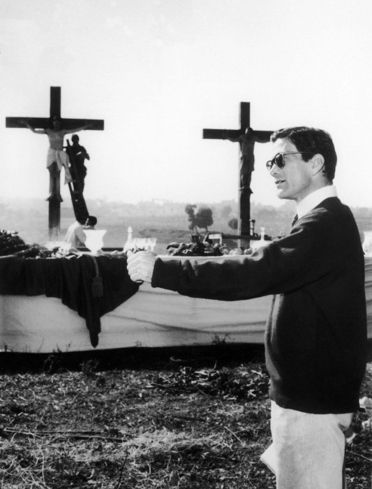 Viene in mente Brecht: "così chiamiamo a noi tutte le arti sorelle dell'arte drammatica, non per creare un'opera d'insieme in cui tutte si annullino e si disperdano, ma perché ognuna di esse, insieme all'arte drammatica, dia a suo modo impulso e sviluppo all'opera comune; e il loro rapporto reciproco sarà quello di straniarsi a vicenda". (Cfr. Bertolt Brecht, Breviario di estetica teatrale in Scritti teatrali, Torino, Einaudi, 2001). In effetti il cinema pasoliniano così come il teatro brechtiano hanno una simile peculiarità straniante. Ma in Pasolini lo straniamento ha motivazioni, finalità e, soprattutto, canoni espressivi, diversi. Perché il linguaggio cinematografico, anche nell'affinità drammaturgica, è estremamente diverso da quello teatrale, differenze particolarmente acuite dalla concezione pasoliniana del cinema, concezione profondamente linguistica. Paradossalmente il cinema ha in sè, come congenitamente, i mezzi potenzialmente più efficaci per la realizzazione di una sorta di, pressoché utopico, “straniamento perfetto”. Il teatro infatti, come sostiene Grotowski, può rinunciare a tutto quanto vada ad essere strumento espressivo (scene, costumi, maschere, musiche, persino palco e teatro architettonicamente inteso, fino addirittura alla rinuncia al testo) ma mai potrebbe rinunciare alla presenza dell'attore. Questo contatto umano inevitabile, è invece da subito ovviamente evitato dall'opera filmica. Pasolini inoltre basa la propria concezione cinematografica, così come Brecht, sulla volontà di suscitare velleità critica nello spettatore ma non rinuncia al sentimento. "I sentimenti non si possono cambiare. Sono essi che sono storici. È ciò che si prova che è reale". (P. P. Pasolini, Lettere Luterane, Torino, Einaudi, 2003, p. 6) questo ovviamente ci fa subito pensare alla critica che Metz (cfr. Metz,1968) mosse a Pasolini a proposito della sua semiotica cinematografica. Laddove Metz vede il film come la "duplicazione fotografica di uno spettacolo reale che ha sempre e già un senso", ponendo nel film la forza comunicativa, per Pasolini il cinema non solo si serve della mente dello spettatore ma è lì che diventa arte, è lì che diventa indubitabile, è lì che si compie come atto linguistico, rimettendo allo spettatore la capacità unica e imprescindibile di cogliere la dialettica del cinema in cui coincidono significante e significato (il cinema come linguaggio scritto della realtà) attraverso la dialettica tra le varie componenti dell'opera filmica stessa (come l'accostamento tra sacro e profano e la messa in scena attraverso immagini che contrastano con la musica).