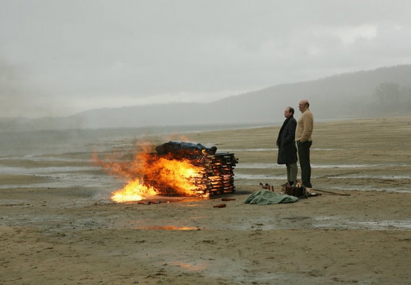 Su queste basi si dispiega una meditazione che investe il tempo e la memoria, l’ineludibile necessità del destino, l’amore e ciò che se ne fa per eccellenza portatore, il corpo femminile. Eppure, nonostante la limpida sincerità dell’omaggio che i protagonisti intessono alla femminilità, rimangono disturbanti i contorni che tale ideale femminile finisce per assumere. Se la donna è probabilmente la più vicina alla fusione con la natura e, con l’acqua, l’unica a poter lenire una malinconia tenace e quasi atavica, ciò non la riscatta da una passività senza appello, dal ruolo di oggetto compiacente dell’affetto e del piacere maschili, sulla cui reciprocità, è ben presto evidente, non ha senso interrogarsi. E se queste tensioni si collocano alle radici stesse di un universo di valori, è proprio con esso che le sentiamo man mano dissolversi. La sensazione è quella di guardare un mondo sotto vetro, sideralmente lontano nel tempo e nello spazio, già scomparso eppure impegnato a scomparire di nuovo di fronte ai nostri occhi, sotto quel cielo perennemente, magnificamente greve fotografato da Mikhail Krichman.