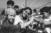 Ma di particolare intensità e di grande valore sono le immagini dell'incontro fra i diversi gruppi di profughi alla frontiera con il Libano. Divisi dal sottile ma imprenetrabile fil di ferro, si incontrano amici e parenti che si ritrovano per brevi istanti, per un abbraccio, un bacio, una stretta di mano. L'immagine del filo spinato torna più volte nel documentario e diventa metafora di divisione forzata e assurda, di libertà negata; ma è sul piano del reale che Frontiere esprime tutta la sua forza, attraverso la luce calda dei Territori, la terra, i corpi dei ragazzi che si muovono e soprattutto la voce, colonna sonora fondamentale del film.