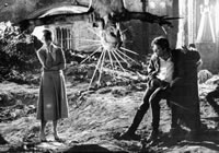Se si adottano come punto di vista i film di Wajda, la Polonia è al centro dell’Europa e della sua Storia. E infatti il suo punto più profondo, la ferita che fece sanguinare l’intero mondo (l’Es del Novecento europeo, se vogliamo) è l’evento che tornerà spesse volte nell’opera del maestro polacco: la Seconda Guerra Mondiale. Così sarà per I dannati di Varsavia, Paesaggio dopo la battaglia, e l’ultimo Katyn, per esempio. È infatti da questa – o per meglio dire dalla fine di questa, dato che il film inizia il giorno della resa della Germania nazista – che prende avvio Cenere e diamanti, il primo capolavoro della carriera del Wajda cineasta. Azione, luogo e tempo rispettano pressappoco le unità aristoteliche, svolgendosi il tutto nell’arco di due sole giornate. Maciek, combattente nazionalista dell’Armata dell’Interno, ormai clandestino (come la sua organizzazione) con la fine delle ostilità e l’imminente nascita della nuova Polonia comunista, ha il compito di assassinare Szczuka (il segretario comunista del partito dei lavoratori di ritorno dall’URSS), ma dopo un primo tentativo fallito è costretto a portare a termine il suo ingaggio all’Hotel Monopol, la sera stessa in cui tutti festeggiano per la tanto sospirata fine della guerra. Durante la notte (e durante la mattina che le seguirà) Maciek per la prima volta nella sua vita scopre di poter scegliere, e che scegliere significa vivere. Ma non riesce ugualmente a smettere di essere l’uomo che è sempre stato: sia lui che la vittima prescelta Szczuka sono uomini soli che hanno poco a cui spartire con la vita di compromessi che li aspetterebbe, circondati come sarebbero di doppiogiochisti, di mediocri, e di freddi calcolatori. La loro vita è (stata) fulgida, intensa, e senza mezze misure: messi all’angolo dalla Storia, vittima e carnefice, si ritrovano uniti durante il loro ultimo atto.