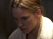 Torniamo alla funzione dell'incidente sul ring. Improvvisamente si spiega l'insistenza con cui la regia ci mostrava il gesto di piazzare lo sgabello a fine round e che prima poteva sembrare un modo originale di girare le scene sul ring (come sappiamo alcuni grandi film hanno già sviscerato a fondo l'"estetica" del match, solo da ultimo Alì di Michael Mann): se altri usavano il ricorso al cartellone numerato per scandire i round, soffermarsi sullo sgabello può anche sembrare un modo per evidenziare l'importanza del raccoglimento del partecipante, la pausa come momento altrettanto fondante (che sia voluto o meno, la scelta ha anche questo effetto); ma poi la ricorrenza di questo gesto banale segna una variazione, e la storia cambia per sempre (è l'estrema fragilità dell'esistente di cui era consapevole più di ogni altro il popolo greco, che nell'antichità tributò ad essa tutto il senso della propria arte). Altre sono le lezioni di stile di questa messa in scena semplice ma rigorosa, che giustamente molti hanno ricondotto a Ford. Ci piace ricordarne un esempio, per discendere dall'ellissi temporale all'ellissi nell'inquadratura, al fuori campo: è la scena in cui Frank consiglia Maggie sul ring, lei riparte all'attacco e un movimento all'iindietro della m.d.p. non ci mostra lo scontro, ma dal suono fuori campo e dall'espressione di Frankie capiamo subito che l'avversario è stato messo al tappeto. Così Eastwood ci chiude un occhio ma ci porta con lui e la Swank direttamente sul ring, facendoci partecipare con un fulmineo sorriso di soddisfazione.
