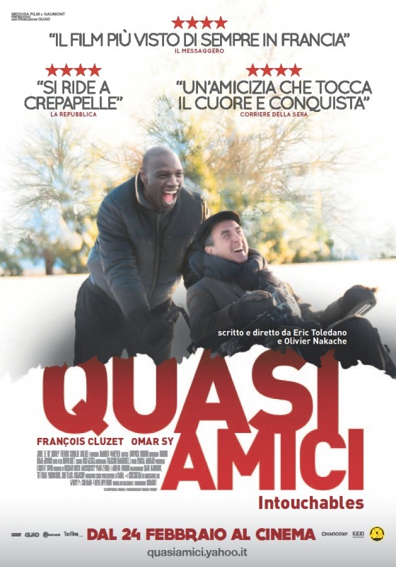 Nell’amichevole lotta tra paninari italiani e snobboni francesi, puntualizzare sul fatto che al primo posto della classifica dei film d’Oltralpe più visti di sempre ci fosse Bienvenue chez les Ch’tis (il nostro Giù al Nord, prima, e Benvenuti al Sud, poi) zittiva ogni replica, causando irrigidimenti di mascelle vari e nervosi tic all’occhio. Pare che adesso ci tocchi abbassare un po’ la cresta poiché, sebbene la vetta spetti ancora a Dany Boon, il secondo posto se lo sono ormai aggiudicato i quasi amici Olivier Nakache ed Éric Toledano con il loro Intouchables. Un soggetto che è già finito nelle mani dei fratelli Weinstein e che sappiamo verrà inevitabilmente recuperato in innumerevoli remake.