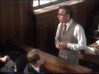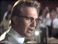 Perché, attenzione, in un ideale gioco delle parti tra soggetti interni ed esterni all'oggetto/film, Garrison non è, né Stone vuole che sia, lo spettatore: il personaggio di Costner richiama piuttosto lo statuto dello stesso regista, cioé di colui che, benché gli sia preclusa una visione chiara e completa della vicenda (come testimonia simbolicamente il ricorrente riflesso sugli occhiali, in particolare nella scena in cui apprende della morte di due potenziali testimoni e in quella in cui Beverly si rifiuta di deporre in tribunale), si sforza di far vedere agli altri. È anche per questo motivo, peraltro, che nell'economia del film suona stonata la sequenza del colloquio con mr. X, troppo didattica e con un Garrison relegato al ruolo di ascoltatore. Se dunque accettiamo il parallelismo tra regista e protagonista, chi c'è a rappresentare noi, il pubblico, nella diegesi? Nel finale della pellicola la risposta appare con una certa chiarezza: quella giuria cui Stone, per bocca di Garrison, si rivolge al termine dell'arringa con un "Dipende da voi" detto guardando in macchina. E se è vero che il personaggio di Costner cerca di supportare la sua tesi trovando e collegando tra loro quanti più fatti possibili, è altrettanto vero che il cuore della sua esposizione si appella all'emozione dei giurati nel vedere e rivedere il famoso quarto sparo: quello dell' "indietro e a sinistra" che Garrison ripete in aula mentre mostra alla giuria il filmato di Zapruder. Ha allora ragione chi (3) sostiene che probabilmente, tra tutti gli elementi diegetici, il vero nocciolo non risiede nella figura di Garrison, o in quella di Kennedy, e nemmeno nell'oggetto/evento "morte di Kennedy", bensì proprio in quello sgranato 8mm.
