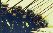 La guerra perde di significato. Poche sono le scene di vera battaglia e tutto sembra ridursi ad un aspettare e poi inseguire. Come se non bastasse il valore del guerriero, unica maniera per distinguersi nel momento in cui l'uomo torna alle leggi più brade e ferine, viene spazzato via dall'introduzione delle armi da fuoco, che pongono la distanza tra i soldati e apriranno una nuova epoca di confronti bellici sempre più terribili. Lo sguardo tra i due capitani, prima dello scontro finale, è unico ed eloquente. Da quel momento in poi ciò che essi rappresentavano sarà spazzato via a colpi di cannone (non è un caso che ambedue abbandoneranno per sempre – anche se per motivazioni differenti – il terreno di guerra).