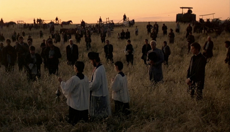 I giorni del cielo, il secondo grande cult di Malick, arriva nel 1978 e conserva di Badlands quel sapore amaro che si sostituisce alla catarsi. La retorica dell’happy ending lascia così spazio al realismo, supportato dalla voce off di Linda, personaggio secondario che, proprio in quanto tale, permea il racconto di un efficace effetto straniante. Uno spiazzamento ovvio, con una perdita di soggettività ma anche di attendibilità dell'informazione. La bambina, infatti, vive la vicenda marginalmente, il suo commento didascalico offre allo spettatore molto meno di quanto testimonino le immagini. Come la rarefazione della psicologia dei personaggi, questo artificio tende a valorizzare, nemmeno tanto paradossalmente, la componente più specificatamente cinematica, fungendo quasi da didascalia di film muto (3). Il film fece incetta di premi: al Festival di Cannes il Prix de la mise en scène, David di Donatello per il miglior attore straniero a Richard Gere e David di Donatello per la migliore sceneggiatura straniera allo stesso Malick, venne giudicato inoltre il miglior film dell’anno 1978 dalla National Board of Review Awards. Nestor Almendros si aggiudicò per la fotografia nientemeno che un premio Oscar mentre Ennio Morricone, per la celeberrima colonna sonora, prese invece il premio BAFTA ed ebbe per l’Oscar solo la nomination.