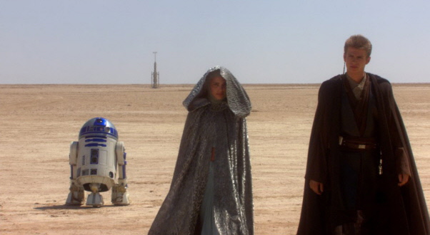 A comporre la nuova trilogia di Star Wars sono i film La minaccia fantasma, L’attacco dei Cloni e La vendetta dei Sith, che di positivo hanno solo tre cose: creare l’antefatto politico della vicenda di Guerre Stellari, ingrassare la "bio" dei protagonisti e mostrare al mondo intero le capacità tecnologiche della Lucas Film. La minaccia fantasma (1999), considerato il primo episodio di tutta la saga, è un deludente remake del prototipo Star Wars: alla figura del primate di Chewbecca subentra quella del mezzo rettile mezzo pesce Jar Jar, mentre la struttura della battaglia finale ricalca quasi pedissequamente quella precedente. In questa sua natura a metà strada tra prequel e remake, il primo episodio della trilogia si trascina dunque verso la prima di una serie di non chiusure, sfruttando al massimo il potenziale dell’animazione dei co-protagonisti e l’incanto di Natalie Portman, che cambia abito ogni scena. Per il resto, oltre il ripetuto meccanismo dell’arena dove si consuma l’ennesima sfida in velocità (da Ben Hur in poi un vero feticcio per gli americani), un’inutile vagonata di gag buone solo per un pubblico di pre-adolescenti, spesso concentrate “razzisticamente” nel personaggio di Jar Jar. L’attacco dei cloni (2002) è il secondo episodio della saga, realizzato con un irritante sapore televisivo che ha bisogno di quasi due ore per costruire la "bio" di Anakin/Dart Feder. Attraverso passaggi narrativi che, privi di qualsiasi spiegazione, rasentano l’amatoriale, e un rapporto tra maestro e alunno banale quanto l’ennesimo inseguimento, il film perde punti anche sulla computer grafica, a causa di un mal riuscito mix di scenografie vere e green screen, fondali romantici e fotografia da bar. Sembra di assistere a una parodia, che questa volta nemmeno l’incanto di Natalie Portman salva, quando realizzi che lei non è mai invecchiata nel ruolo della principessa Amidala, mentre Anakin non è più un bambino ma un adulto apprendista Jedi con la faccia del peggior Hayden Christensen.