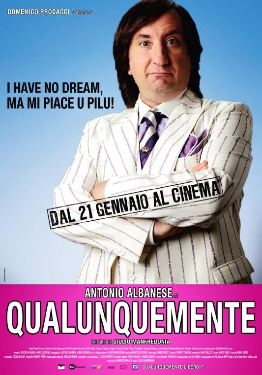 Prodotto decisamente anomalo questo nuovo film di/con Antonio Albanese. Difficilmente inquadrabile ed incasellabile per gli amanti della definizione netta e precisa dei generi quale necessità di comprensione rasserenante di ciò che non si conosce e che appare essere una certa cosa per poi apparire diversamente da ciò che si era pensato. Insomma, qualunquemente, come l'avverbio stesso che dà titolo al film pare ricordarci.